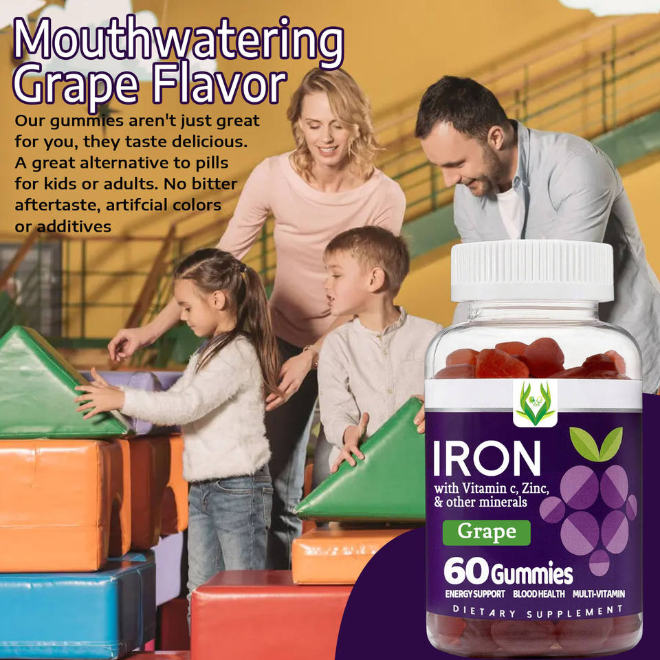 Factory Customizable Iron Gummies 100% Natural Organic Adults Kids Vitamin C Zinc Energy Boost Immune System Support Supplement