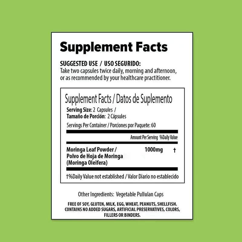 Factory Customization Moringa Leaf Powder Capsule 100% Pure Supports Healthy Energy and Joints Natural Herbal Supplement