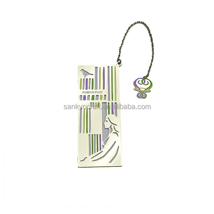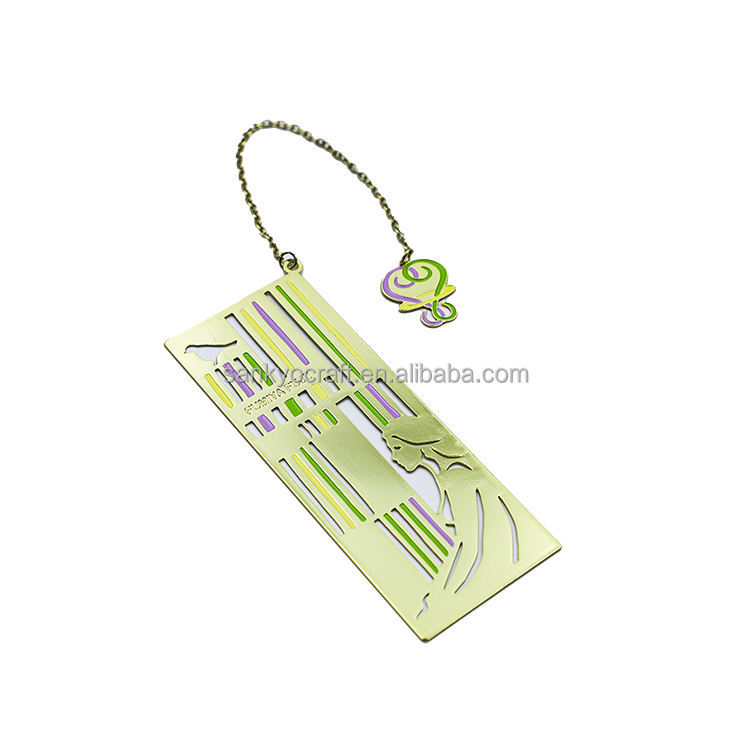 Factory Customized Metallic Bookmark Hollow Out Mettal Bookmark with Small Hang Tag