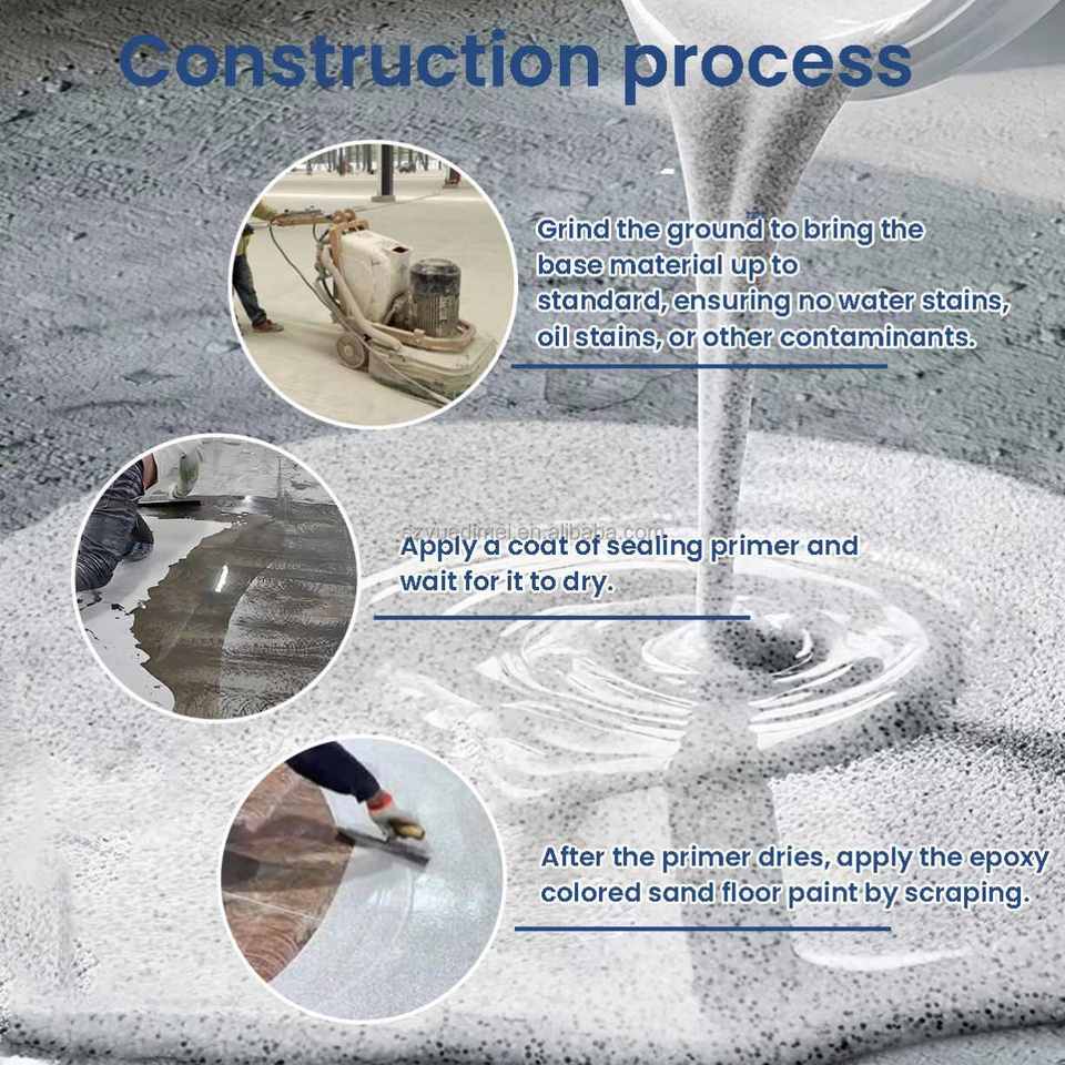 Factory Customized Self Leveling Eco-friendly Waterborne Epoxy Resin Color Sand Floor Finish Coat Brush Quartz Sand Easy Coating