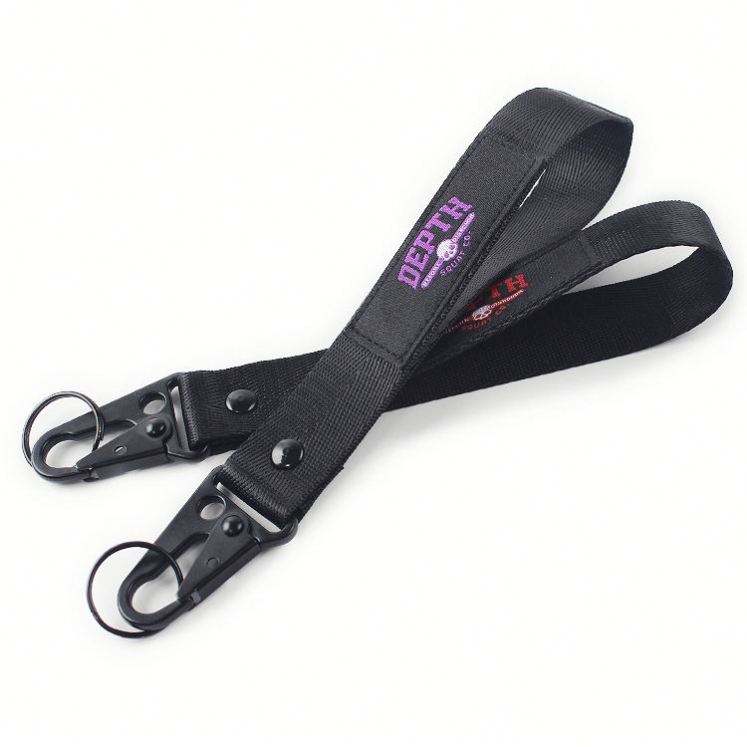 Factory Design Woven Embroidered Patch Short Eagle Hook Keychain Lanyard Motorcycle Wrist Lanyards With Logo Custom