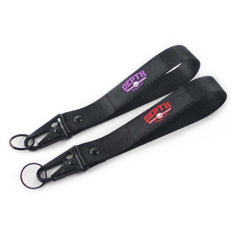 Factory Design Woven Embroidered Patch Short Eagle Hook Keychain Lanyard Motorcycle Wrist Lanyards With Logo Custom