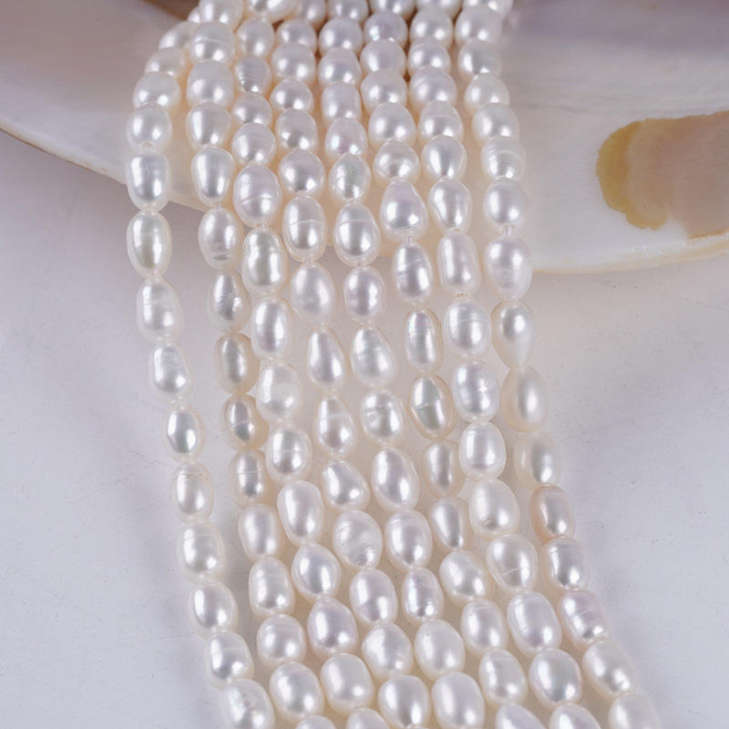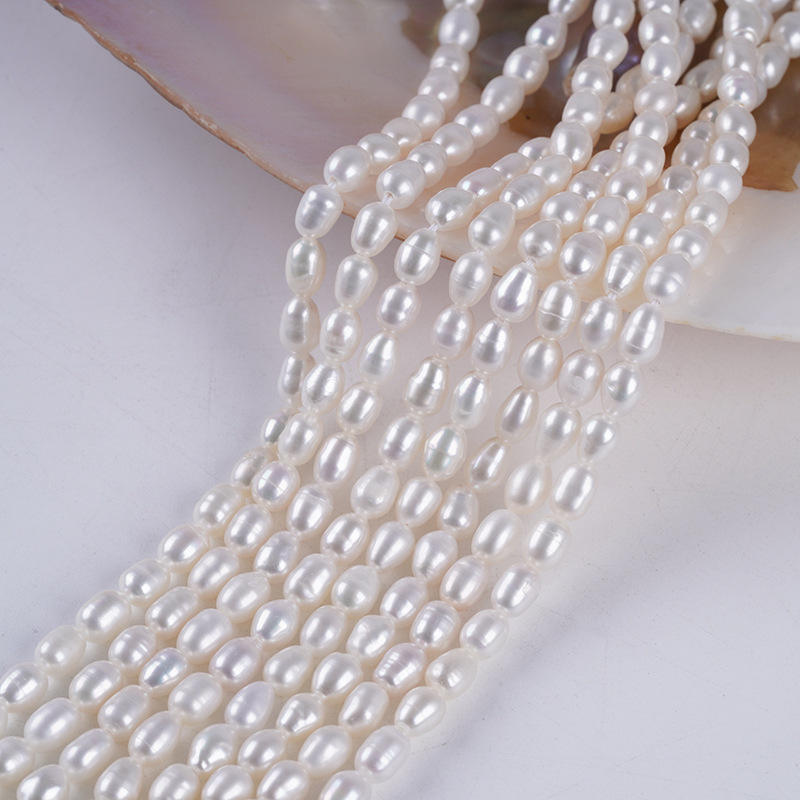 Factory Direct 4-5mm White Rice Shaped Button Pearls Natural Freshwater Pearl Strings for DIY Handmade Necklaces & Bracelets