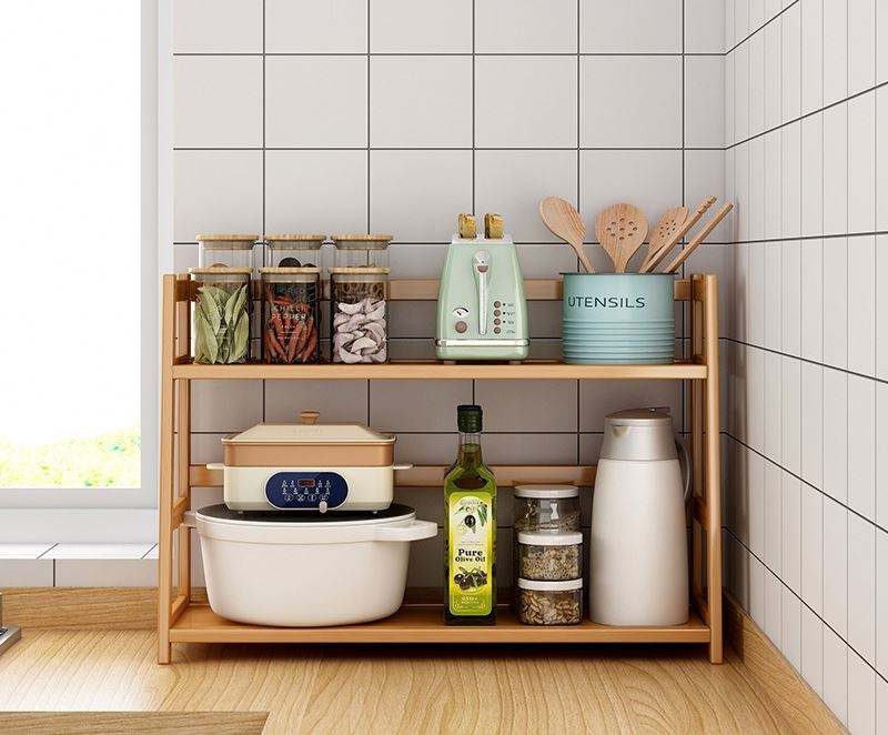 Factory Direct Bamboo Kitchen Storage Shelf Spice Jars Storage Bamboo Spice Rack Organizer