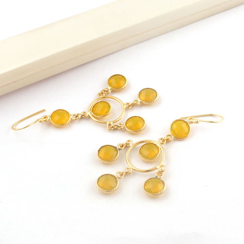 Factory Direct Brass Earrings With Dainty Yellow Quartz Stone Gold Plated Drop Dangle Bezel Setting for Weddings