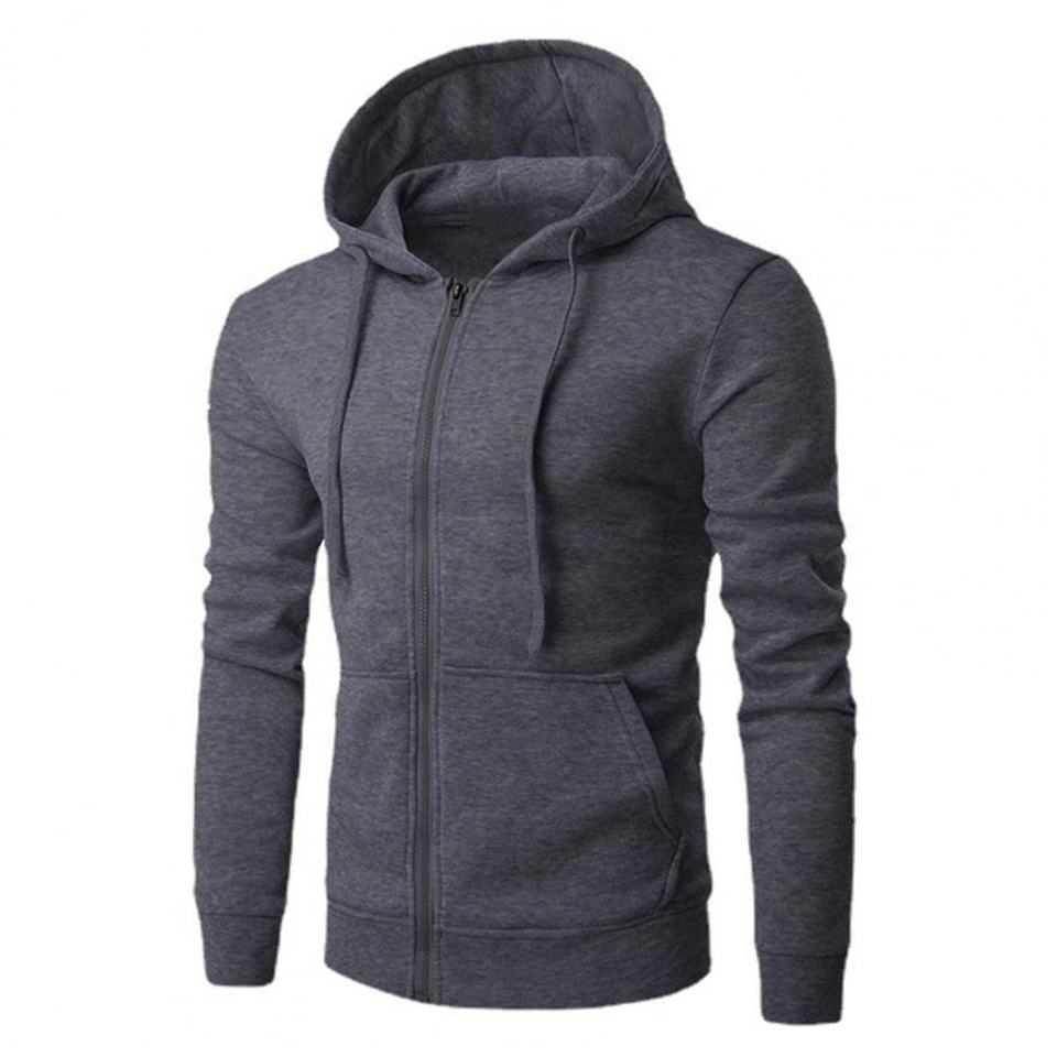 Factory Direct Cheap Sale Men's Plain Blank Drawstring Front Full Zipper Hoodie Slim Fit Sports Casual Hooded Zip Up Sweatshirt