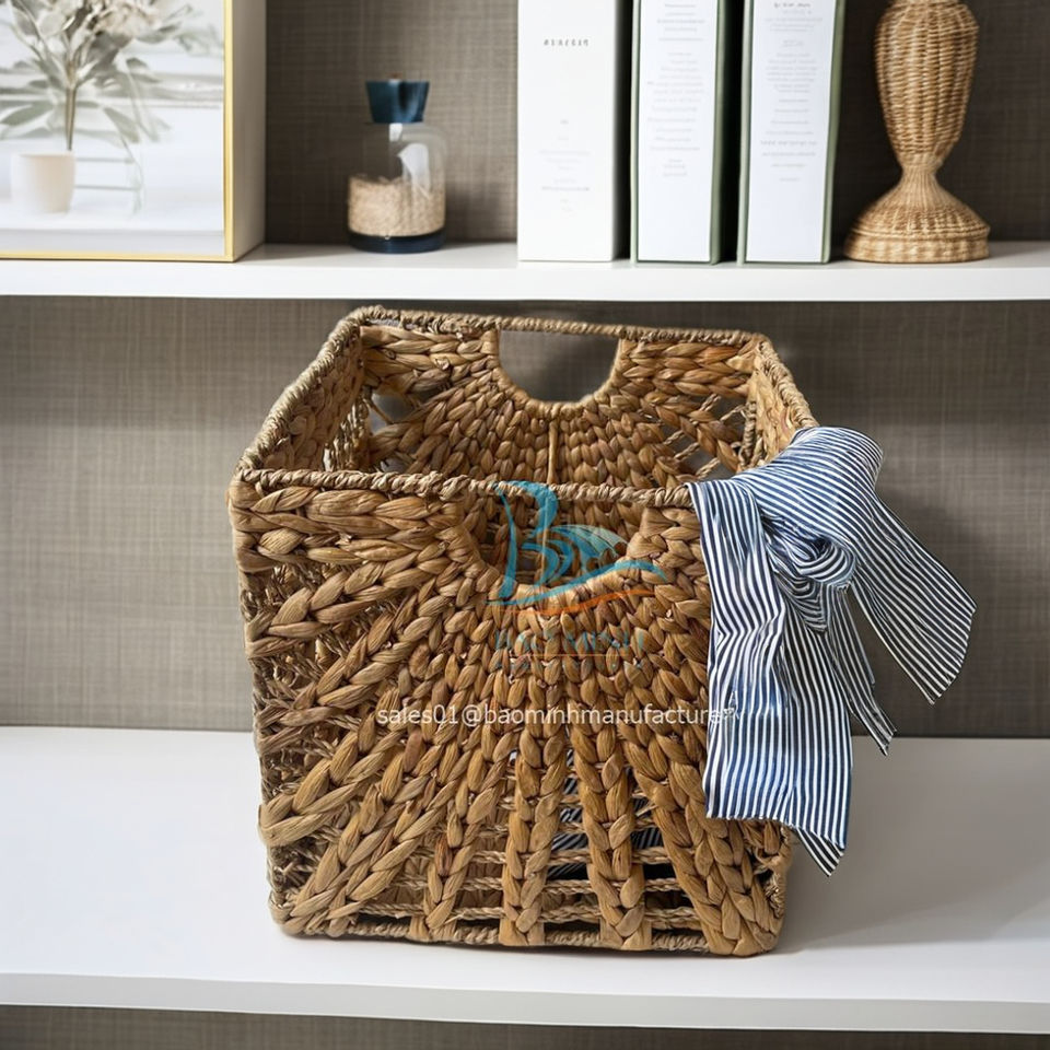 Factory Direct Cheap Water Hyacinth Cube Basket Foldable for Kitchen Bathroom Wardrobe & Living Room