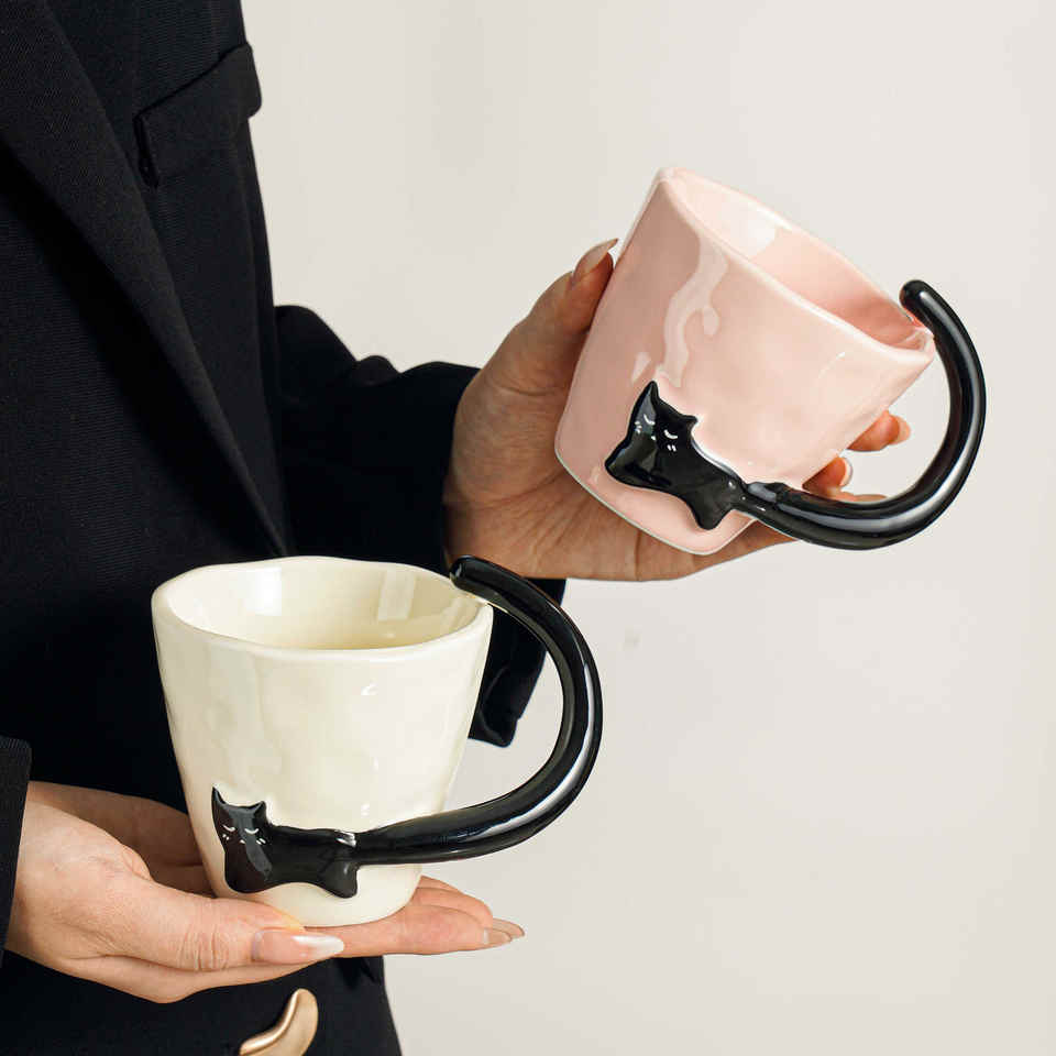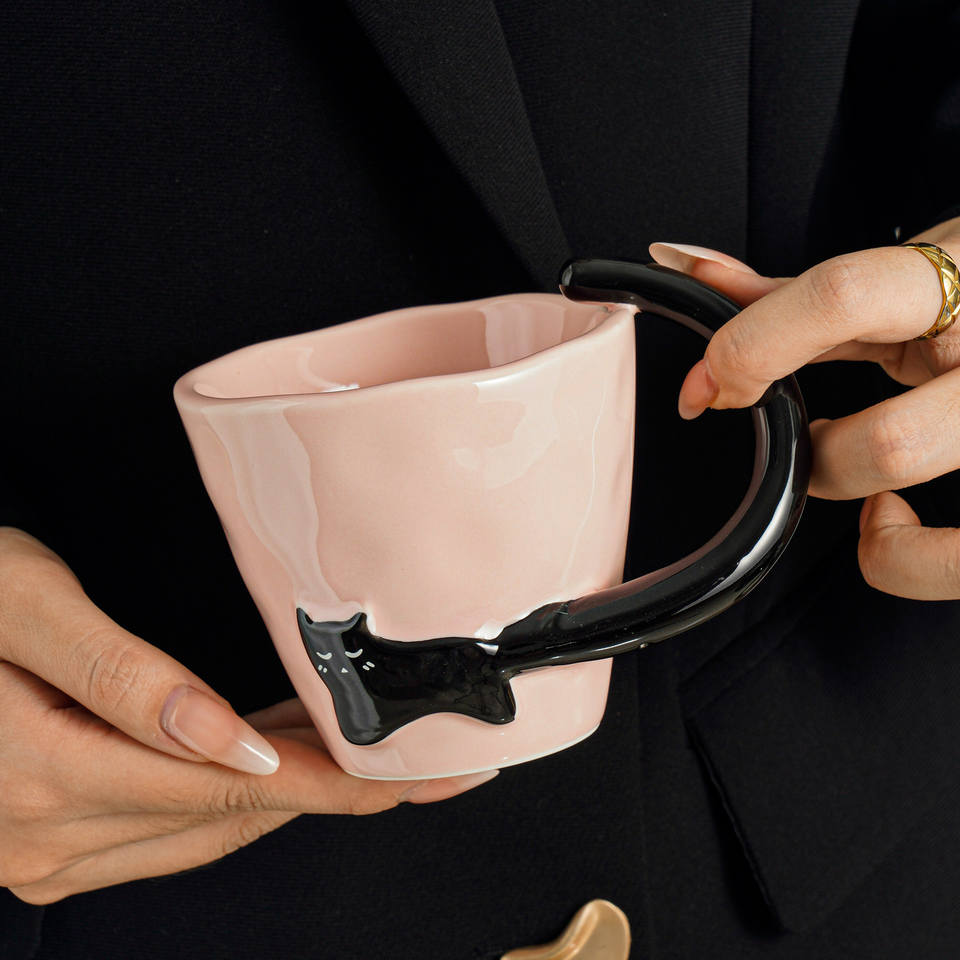 Factory Direct China High Quality Custom Black Cat Embossed Eco-friendly Stoneware Ceramic Mug Food Safe Dishwasher Microwave