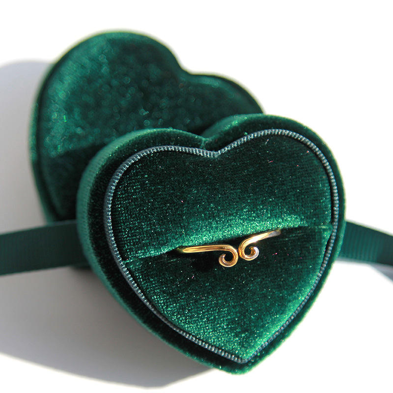 Heart shaped velvet jewelry box with ribbon for ring and necklace