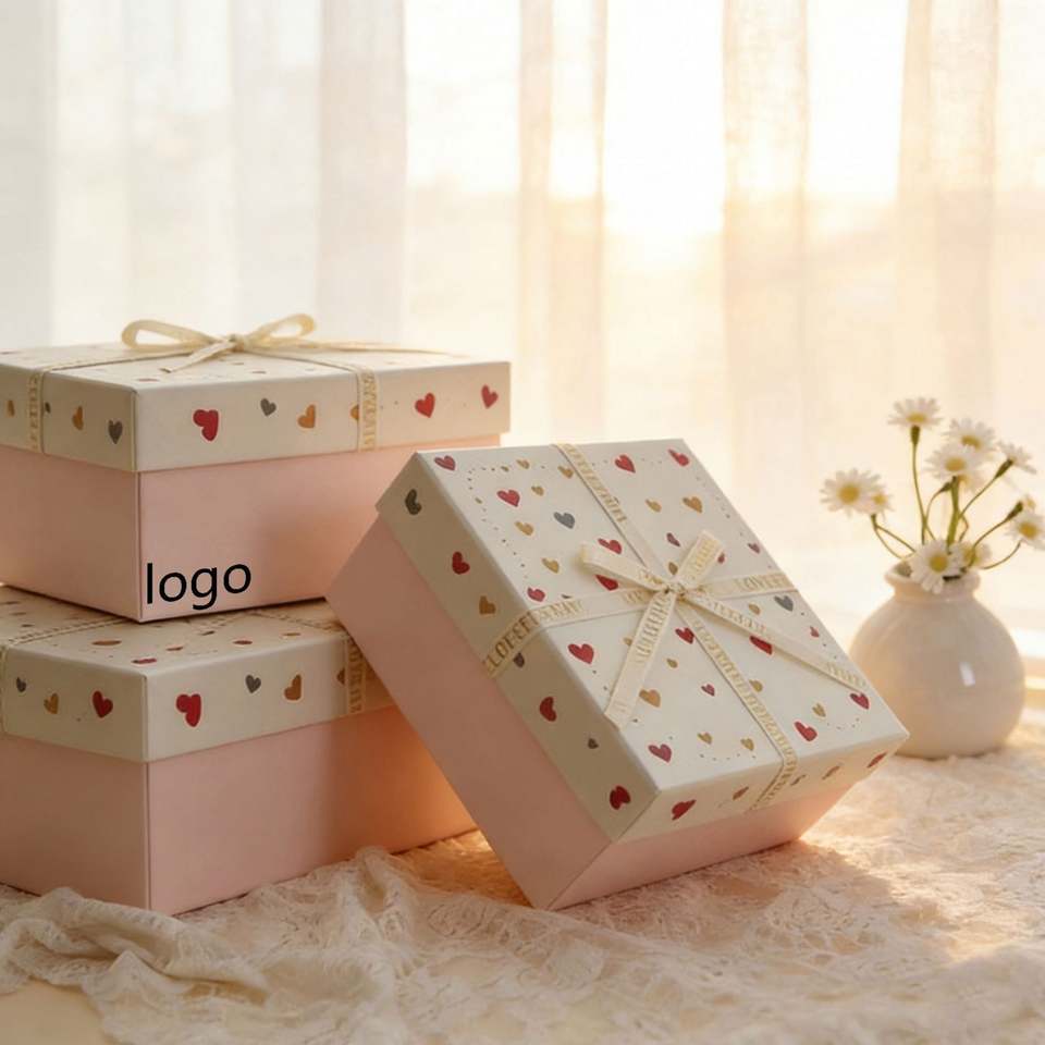 Factory Direct Customizable Heart-print Gift Box With Ribbon Cute Ideal for Valentine's Day & Gift Packaging