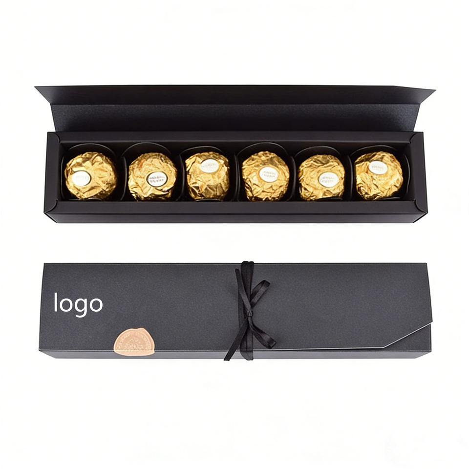 Factory Direct Customizable Matte Black Chocolate Box With Ribbon Food-Safe Ideal for Truffle & Candy Packaging