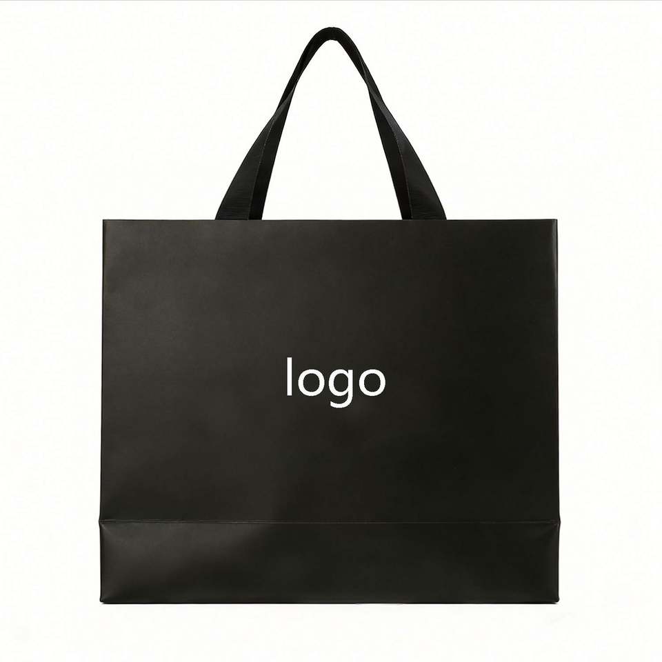 Factory Direct Customizable Matte Black Paper Shopping Bag With Ribbon Handles Luxury Ideal for Boutique & Clothing Packaging