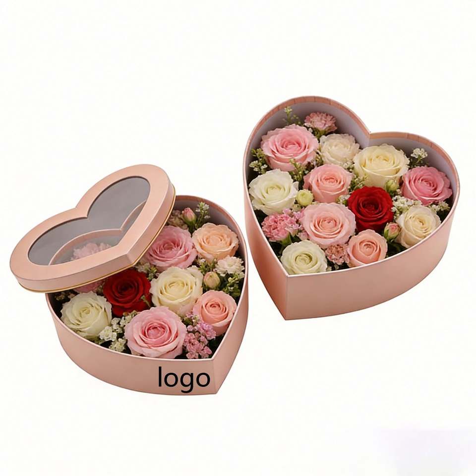 Factory Direct Customizable Pink Heart-shaped Gift Box With PVC Window Elegant Ideal for Valentine's Day & Flower Packaging