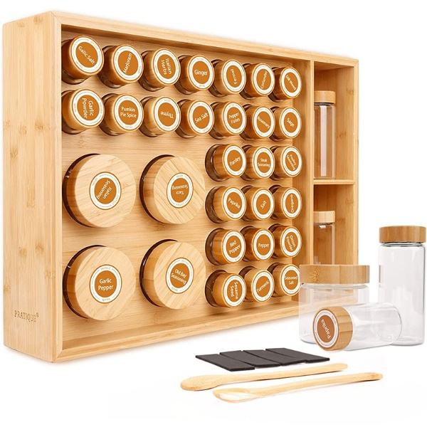 Factory Direct Customized Bamboo 5-tier Storage Canisters & Spice Rack for Organizer in Kitchen