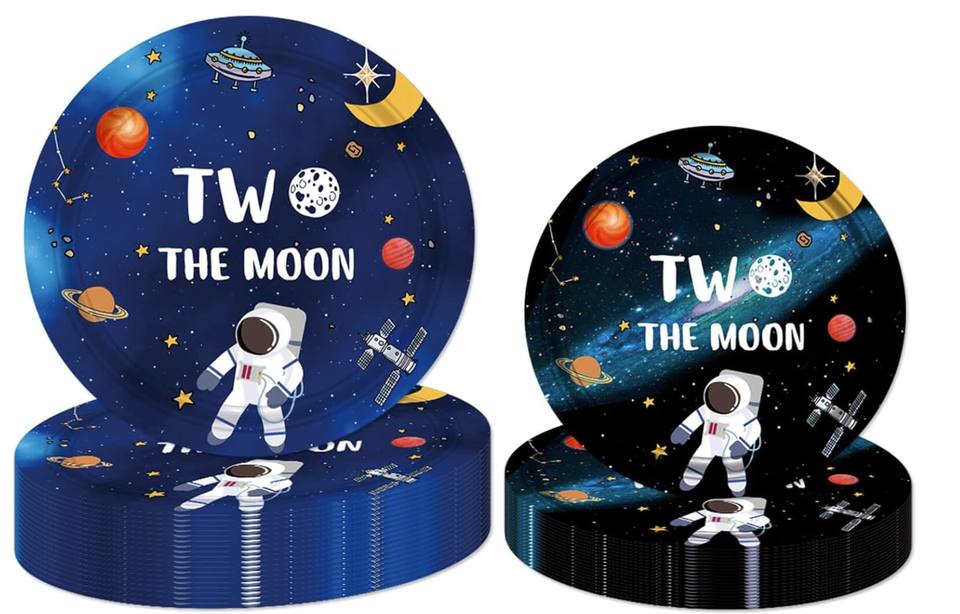 Hot Selling Galaxy Paper Plates 9x10 Inches FOIL Die-Cut Modern Style Two Moon Direct Factory for 2nd Birthday Decorations