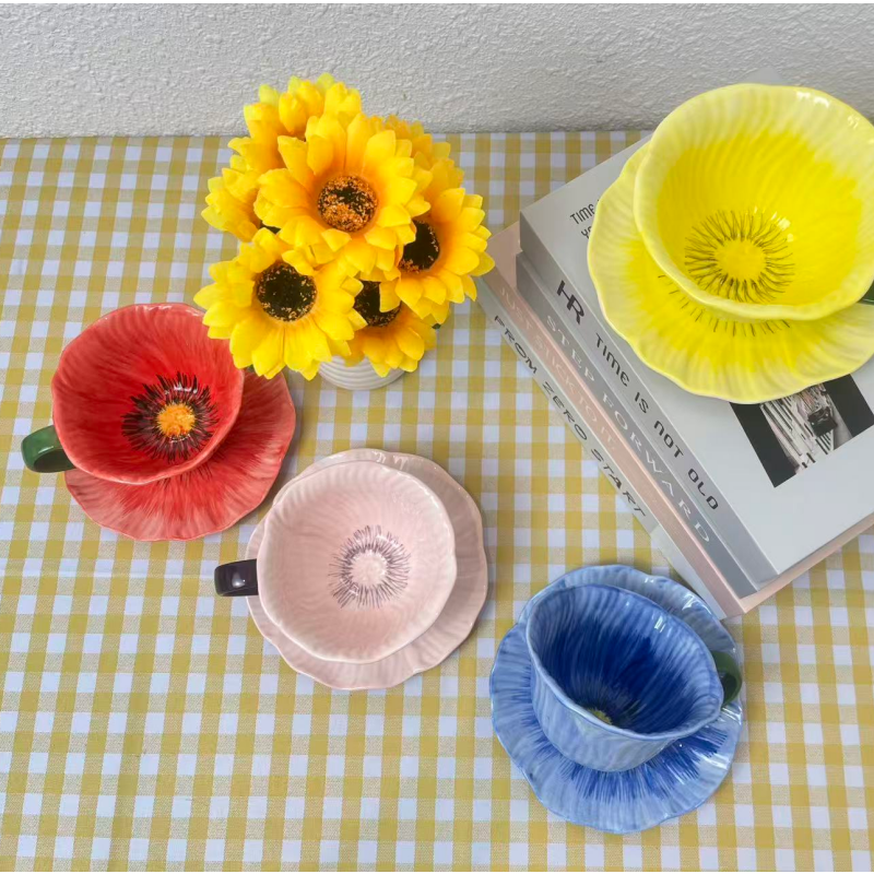 Factory Direct Flower Style Ceramic Coffee Mug and Saucer Set 250ml Capacity Ceramic Handmade Painting Tea Cup