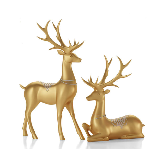 Factory Direct Gold Finishing Reindeer Sculpture Statues Christmas Animal Pair for Garden Elegant Sculpture Garden Aluminum Art
