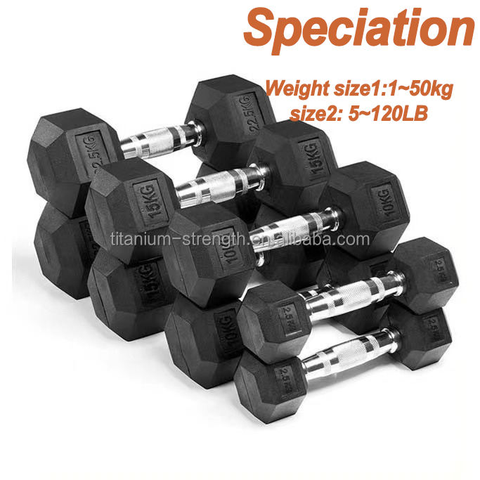 Factory Direct Gym Rubber Hexagon Dumbbell Set 1-50kg 5-120LB Hex Rubber Dumbell for Weight Lifting