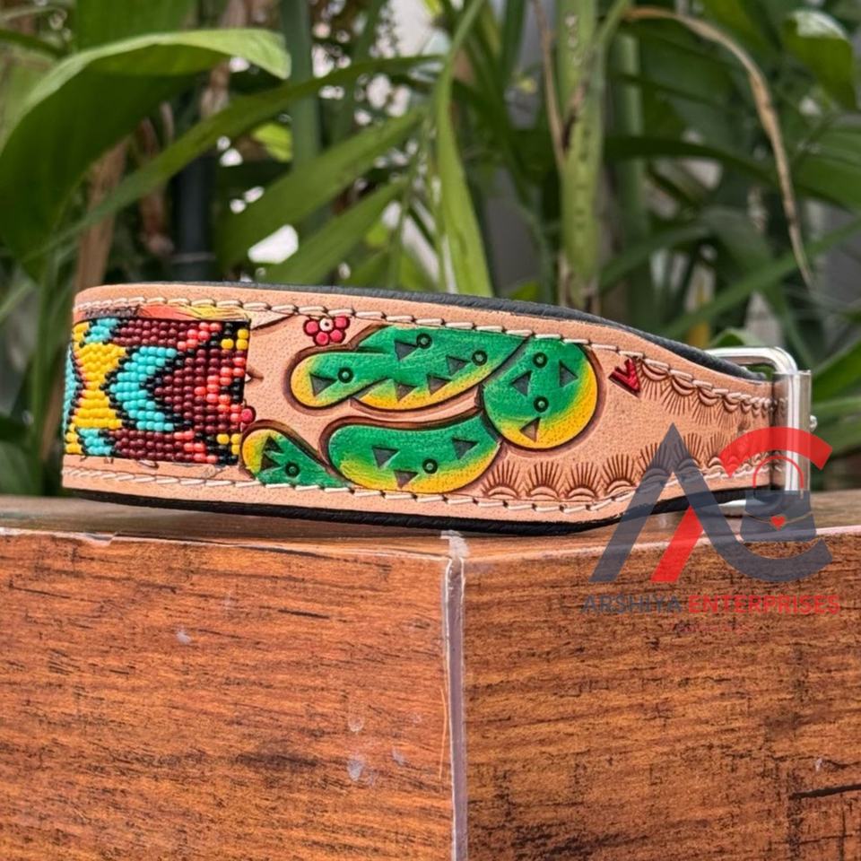 Factory Direct Hand Tooled Leather Beaded Adjustable & Padded Genuine Cowhide Leather Durable Heavy Duty Dog Collar Pet Collars
