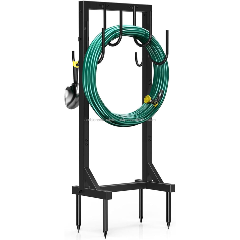 Factory Direct Iron Metal Water Hose Holder & Stand Organizer Black With Prong Base for Lawn Yard Garden by Ambience Lifestyle