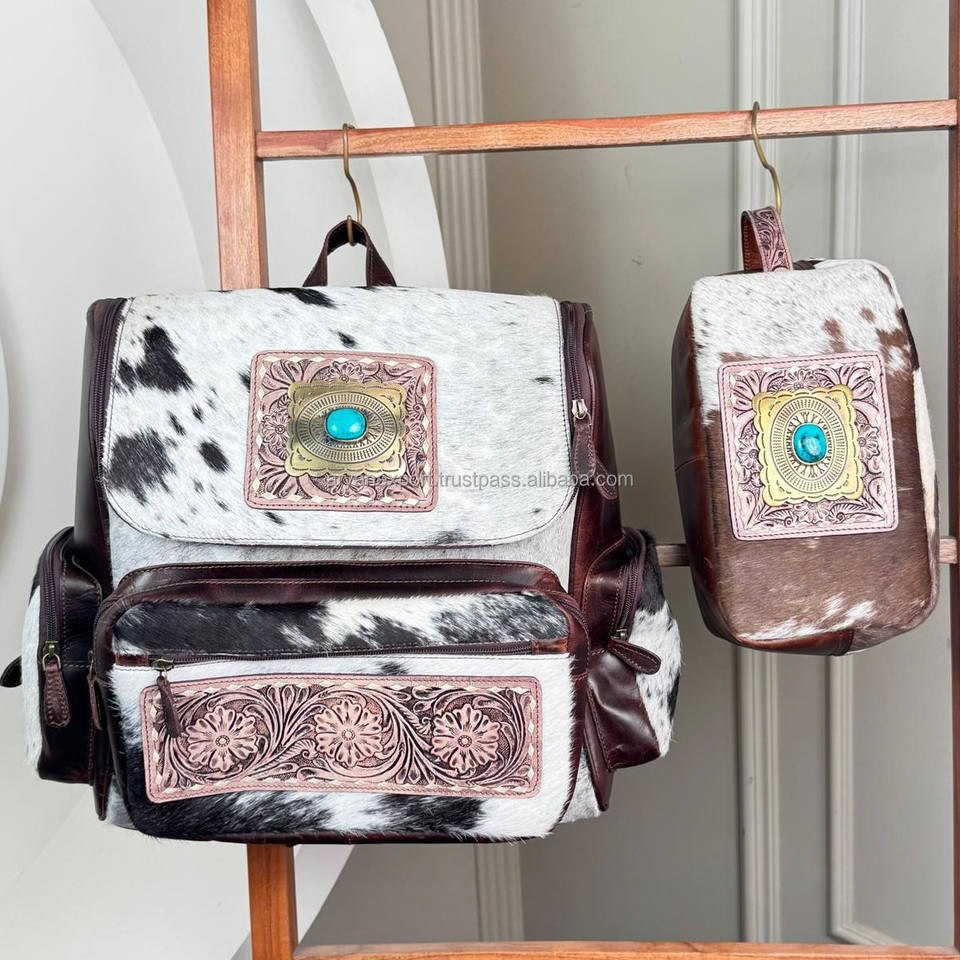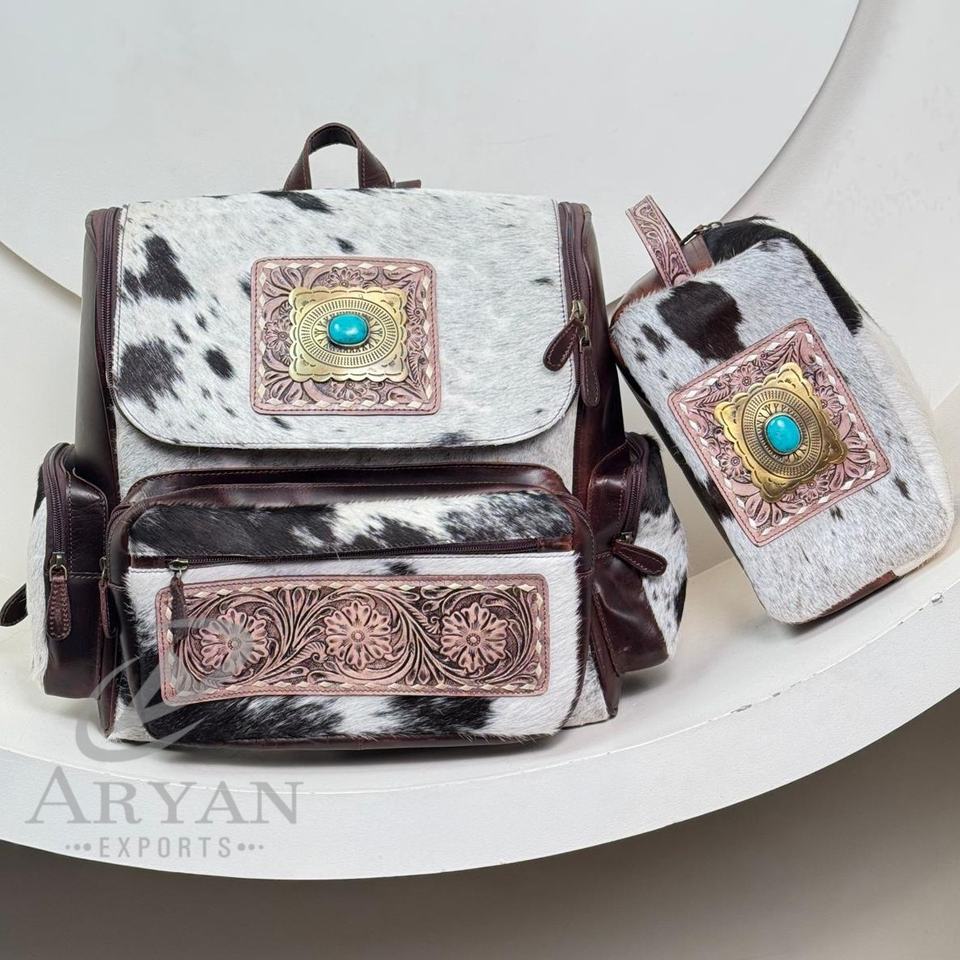 Product Name:Hand Tooled Leather Backpack & Toiletry Bag
