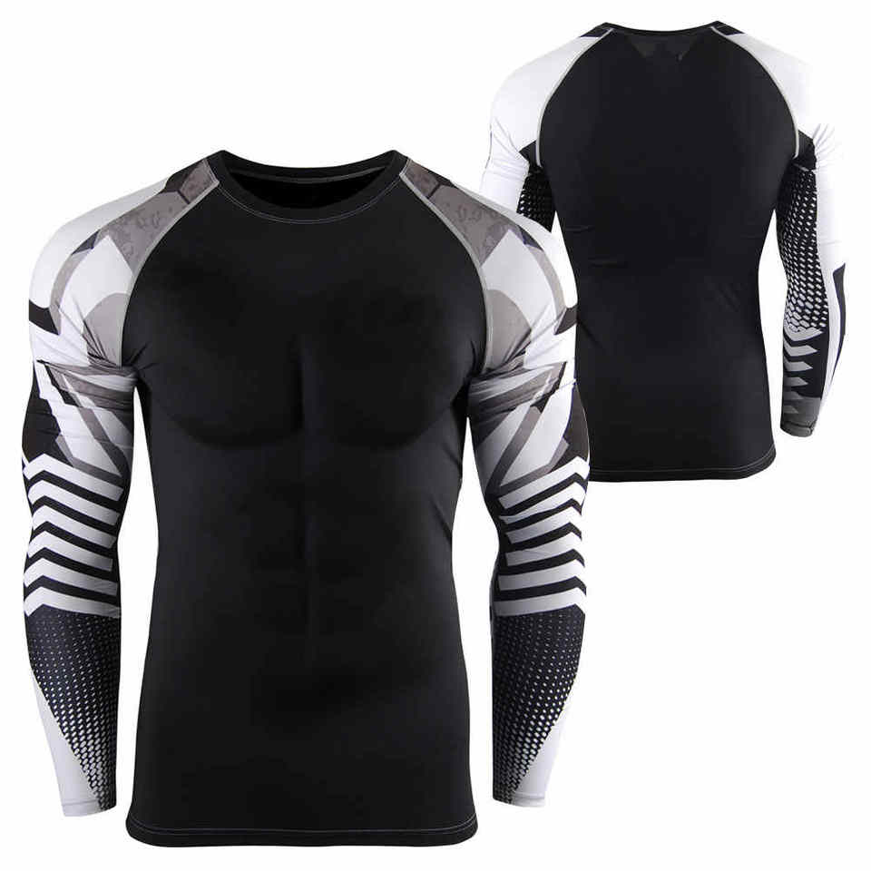 Factory Direct Men's Compression Rashguard Full Sleeve MMA BJJ Training Shirt Anti-Bacterial Polyester/Nylon 220g Quick Dry