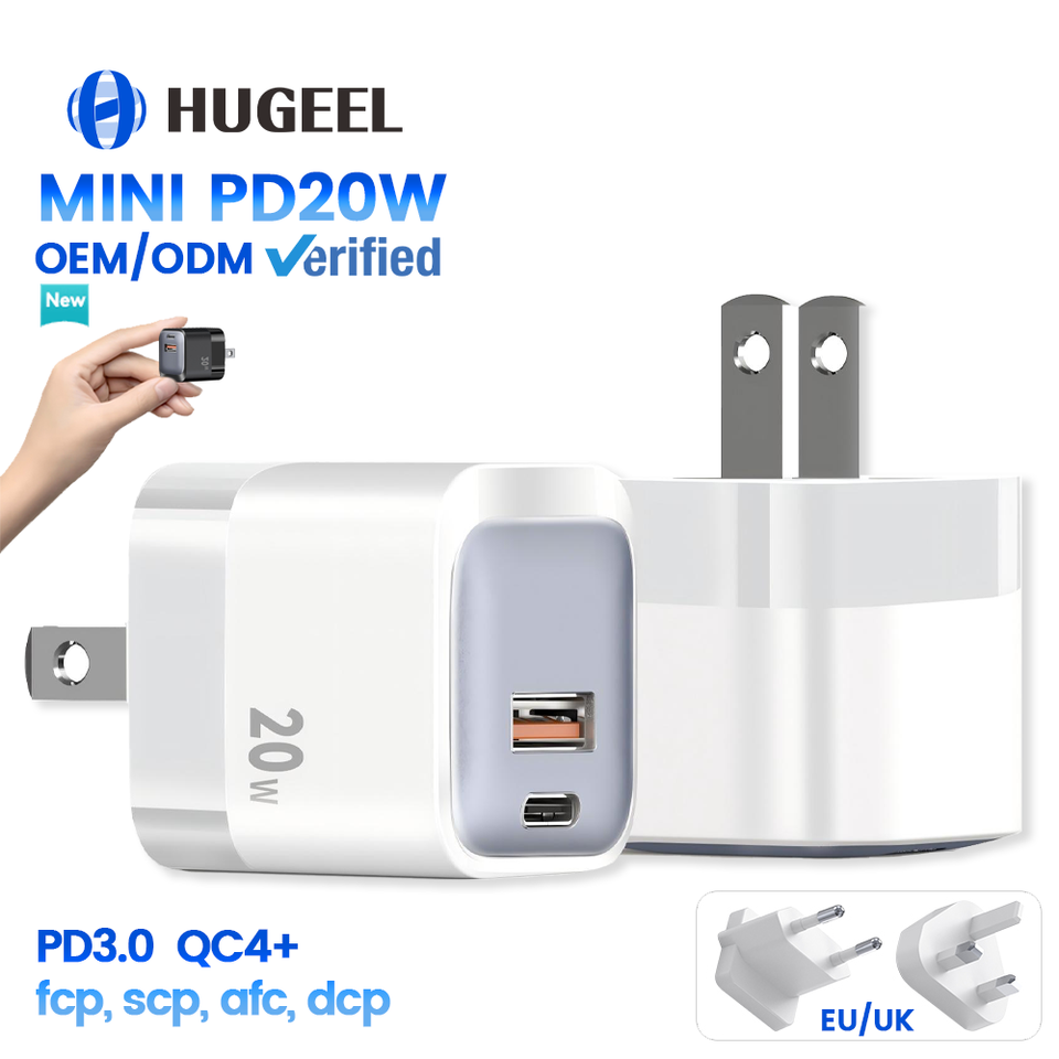 Factory Direct Mini 20W Charger PD3.0 Fast Charging EU UK US Travel Wall Adapter Plug Type-C Charger CE RoHS for Laptop Phone