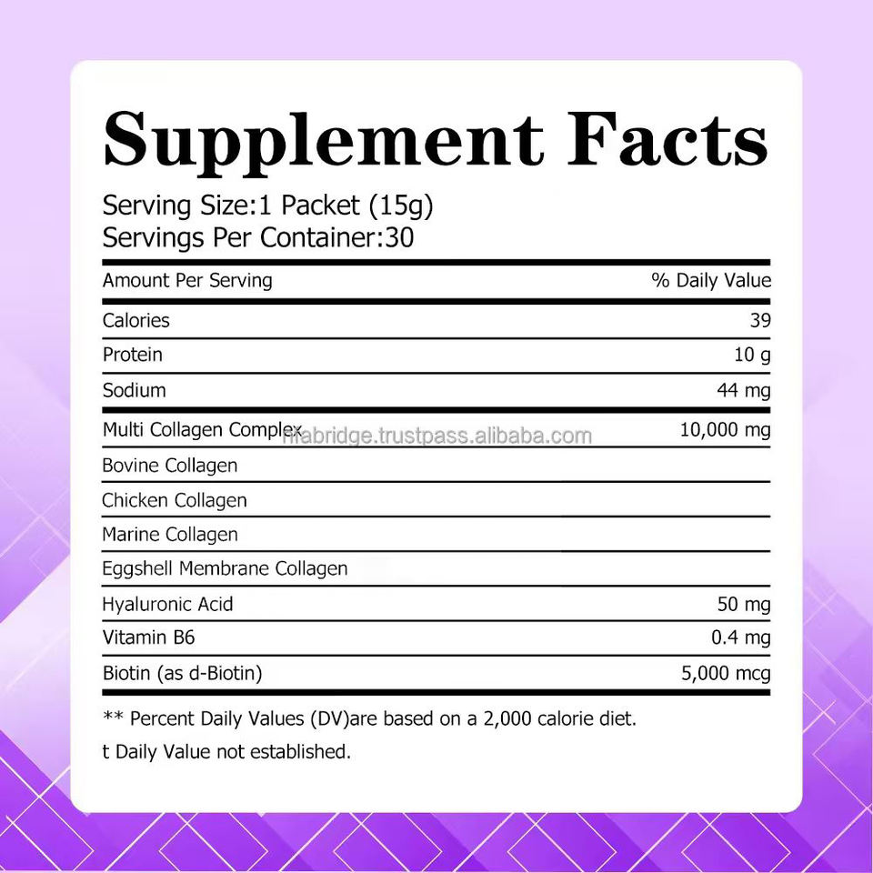 Main Ingredient:Multi Collagen Complex, Hyaluronic Acid, Vitamin B6, Biotin