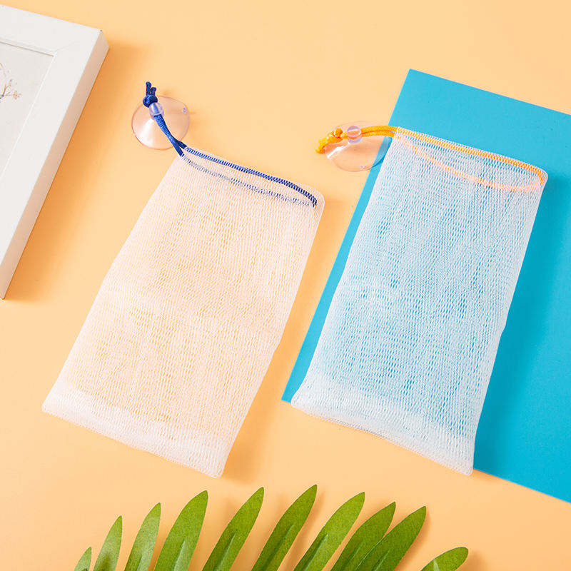 Factory Direct Multicolored Rope Soap Bag Suction Cup White Mesh Soap Net Face Washing Packaging Bath Brushes Sponges Scrubbers