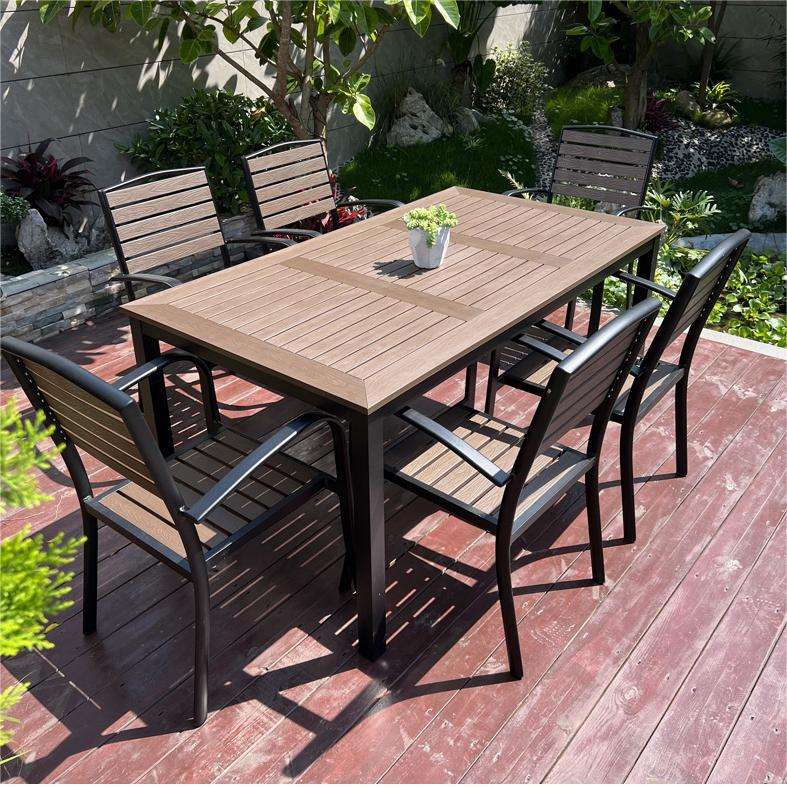 Factory Direct Price Outdoor Furniture Set Plastic Wood Tables and Chairs Garden Wooden Chair