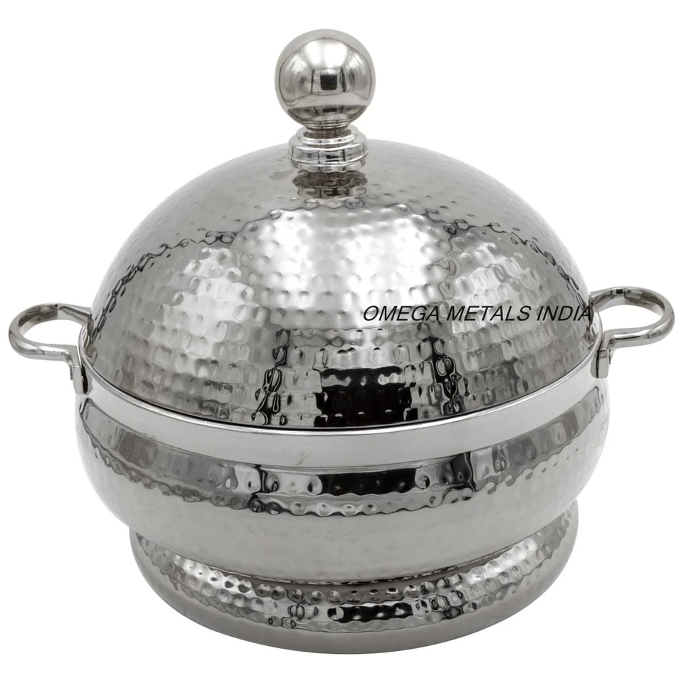 Factory Direct SIlver Casserole Pot With Fancy Hammered Lid Top Trending Kitchenware Food Warmer for Middle East