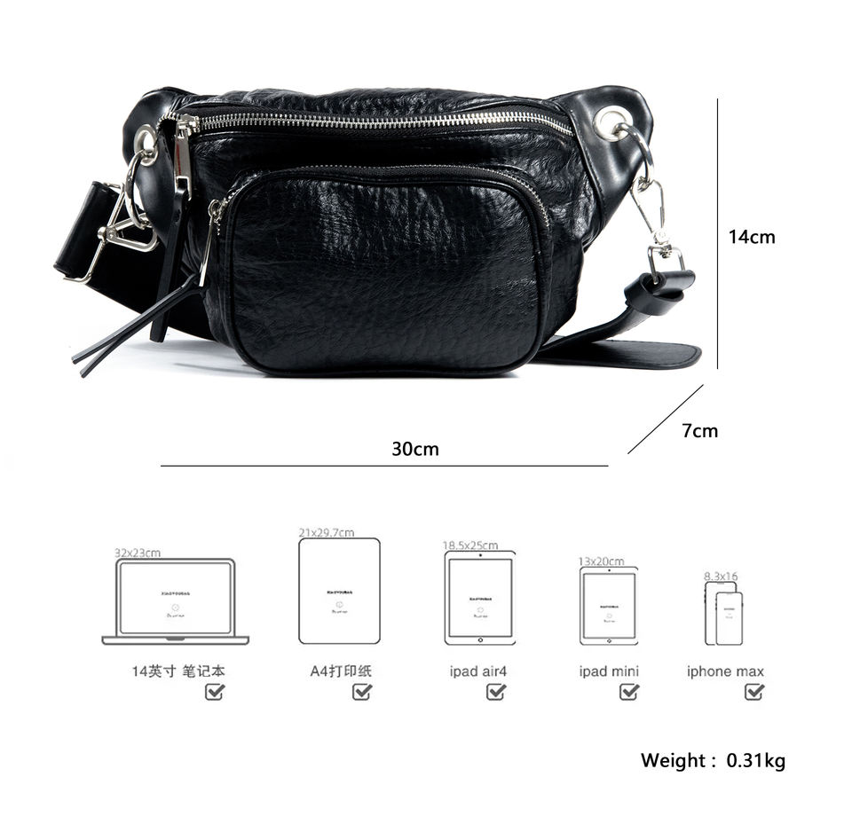 Factory Direct Sale Belt Bum Bags Pu Leather Sports Crossbody Waist Bag Stylish Black Belt Bag