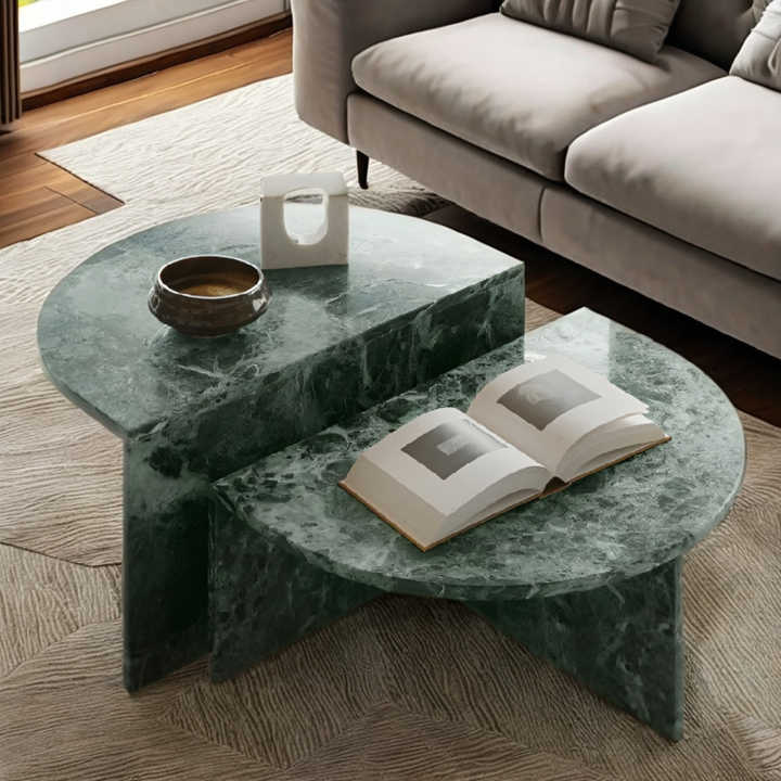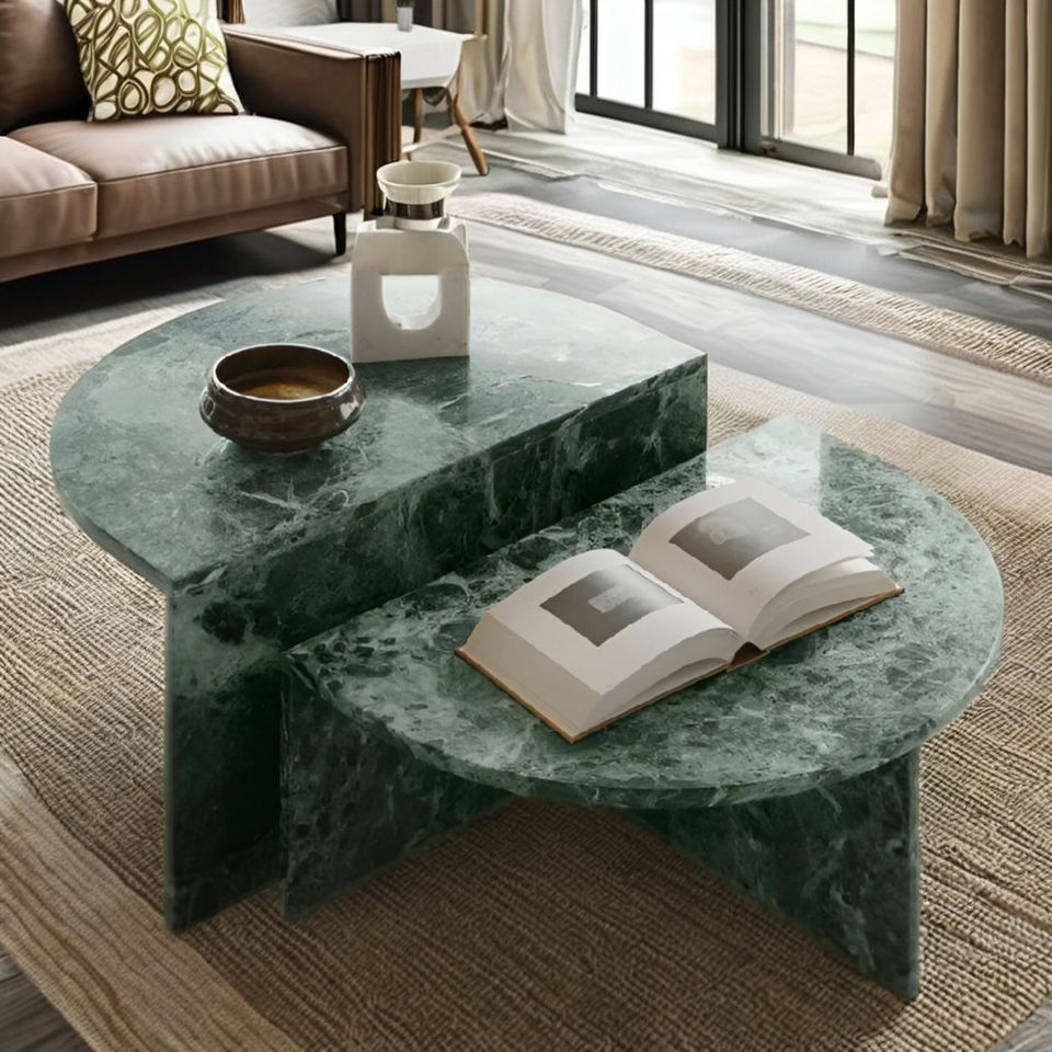 Elegant Green Marble Round Movable Coffee Table Stylish Center Table Living Room Decor Durable Modern Design Set