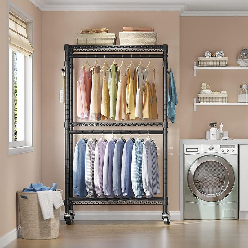 Factory Direct Sale Heavy Duty Garment Rack Rolling Coat Hanger With Cover Adjustable Coat Hanger Portable Closet Wardrobe
