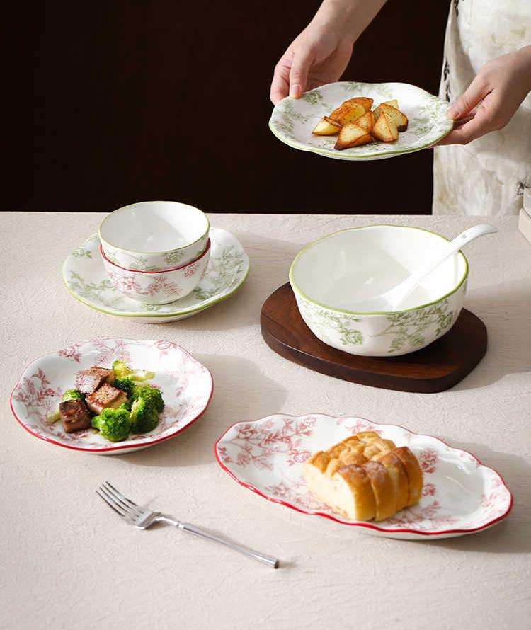 Factory Direct Sale Luxury Ceramic Tableware Set Ceramic Plates Sets Dinnerware French Embossed Design Ceramic Tableware