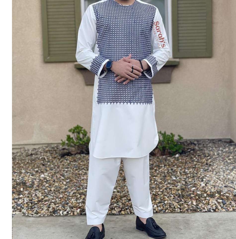 Factory Direct Sale Men's Afghani Dresses New Design Custom Embroidery O-Neck 2 Piece Shirt Shalwar Sets For Male