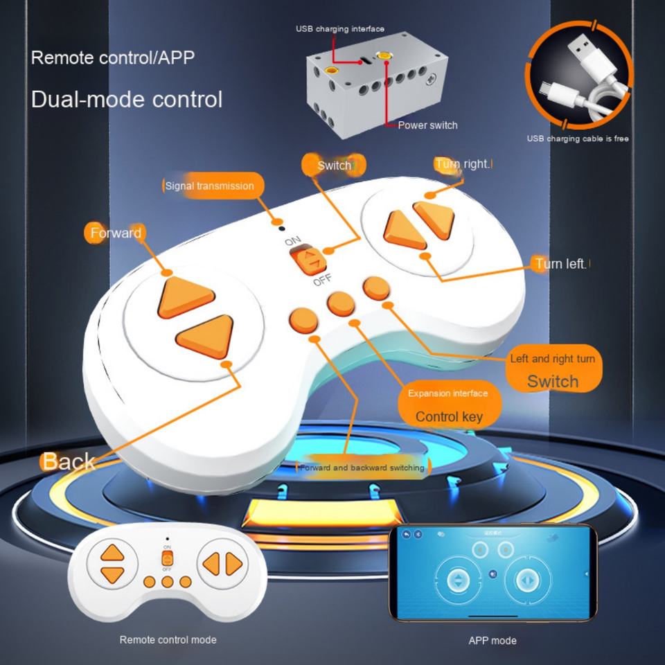 Factory Direct Sale Orange Square Building Blocks Creative Educational Toy Mobile Phone Remote Control Robot Made Plastic ABS