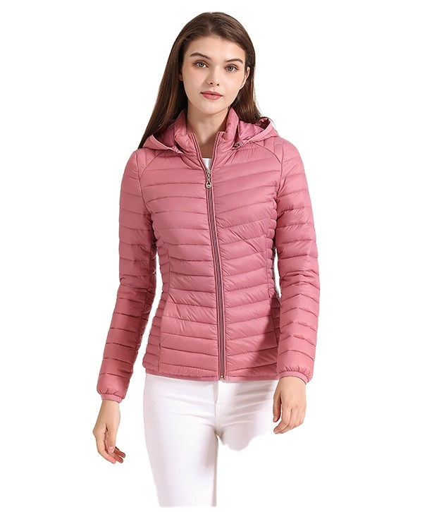 Factory Direct Sale Pink Color Women's Bubble Jacket 100% Polyester Fabric Long Sleeve Slim Fit Quilted Padded Breathable Nylon