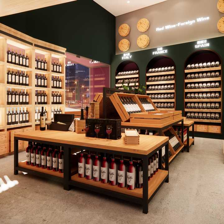 Factory Direct Sale Wine Display Showcase Glass Wooden Wine Display Cabinet Custom Display Stand Led Sign for Wine Store Design