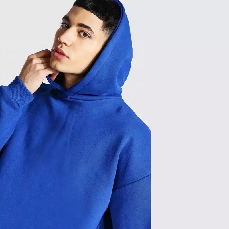 Factory Direct Sales Custom Raw Cutting Streetwear Pullover Hoodie Royal Blue No Strings Men Oversized Hoodie