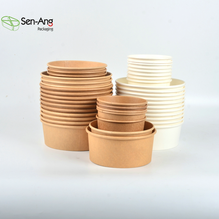 Factory Direct Eco-Friendly 500ml Disposable Round Bamboo Kraft Paper Salad Bowl with PET Lid Take Away Option