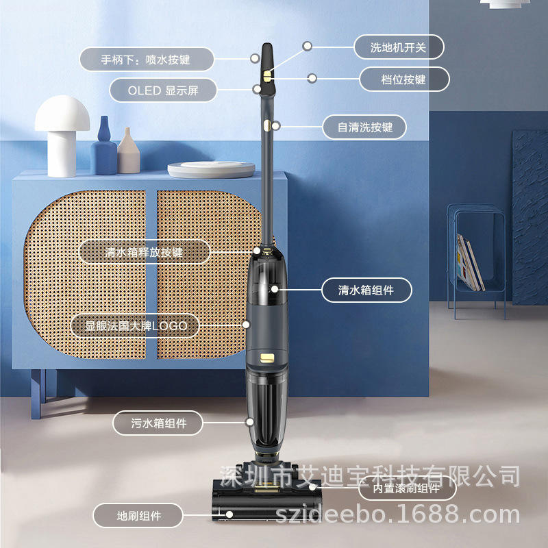 Factory Direct Supply B63E Pro Wireless Household Floor Scrubber Brushless Motor Rod Type Wet/Dry Use Piano Keyboard Mopping