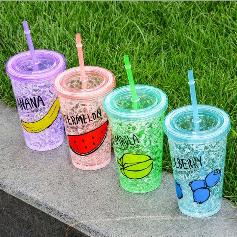 Factory Direct Supply Double Wall Cooling Gel Plastic Sippy Student Portable Car Gift Ice Cool Water Cup