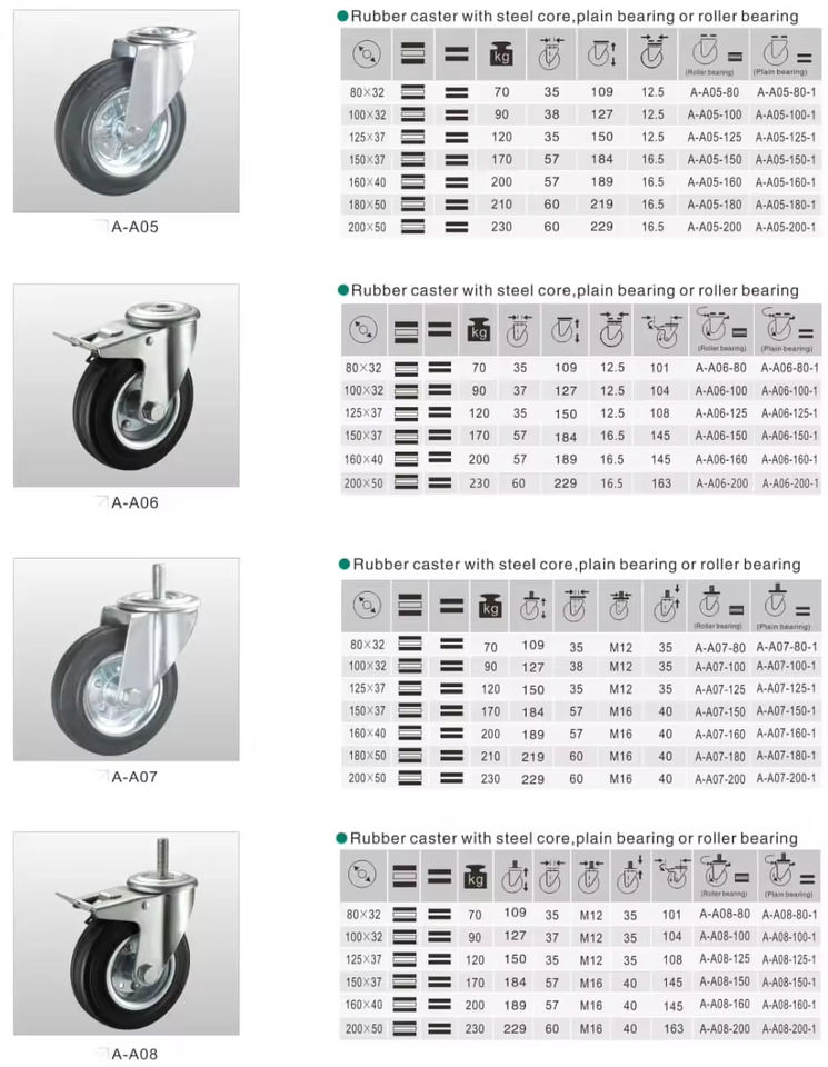 Rubber caster with steel coreModel Number