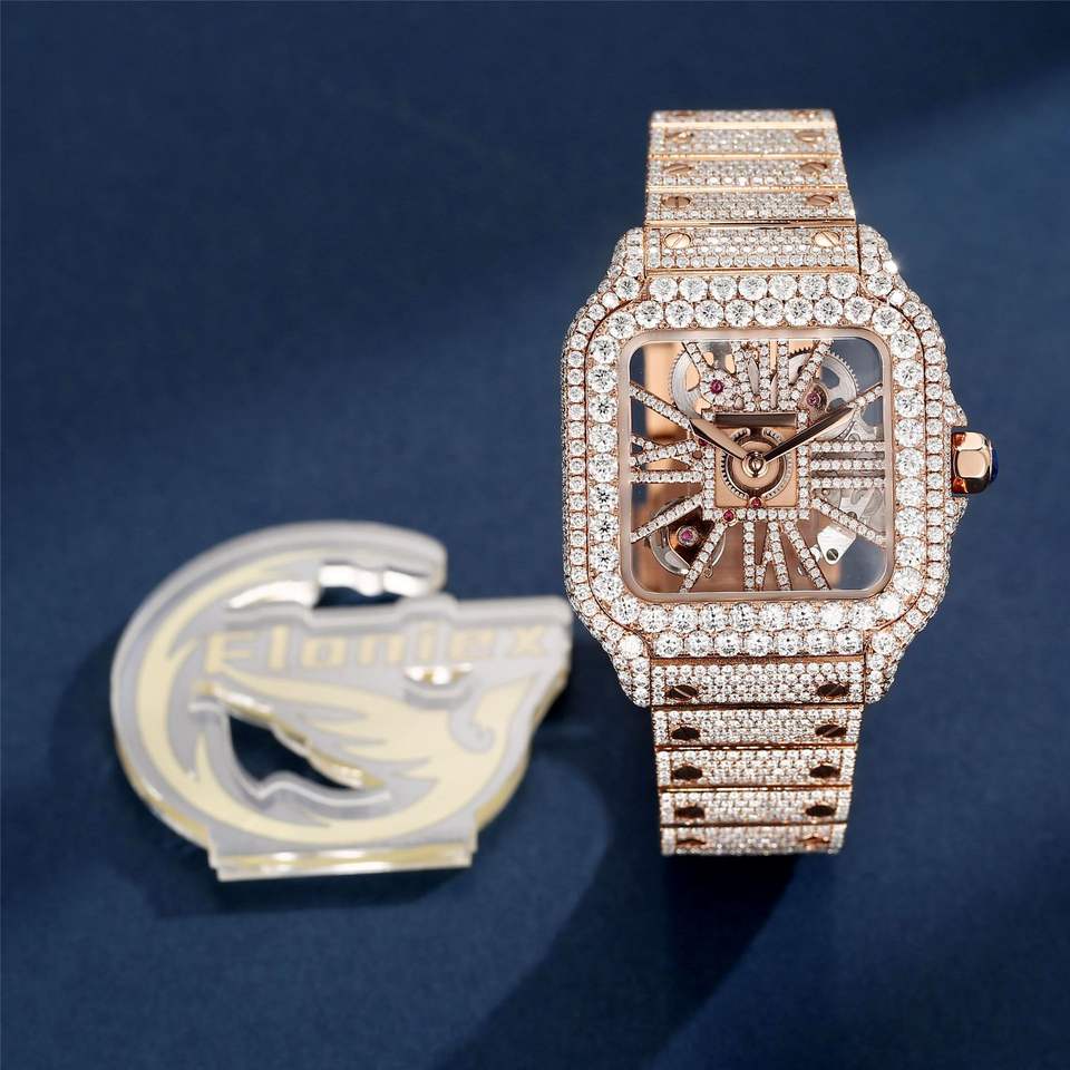 Factory Direct Supply Moissanite Automatic Watch Sapphire Crystal Pointer 42mm Stainless Steel Band ETA Movement Alloy Case