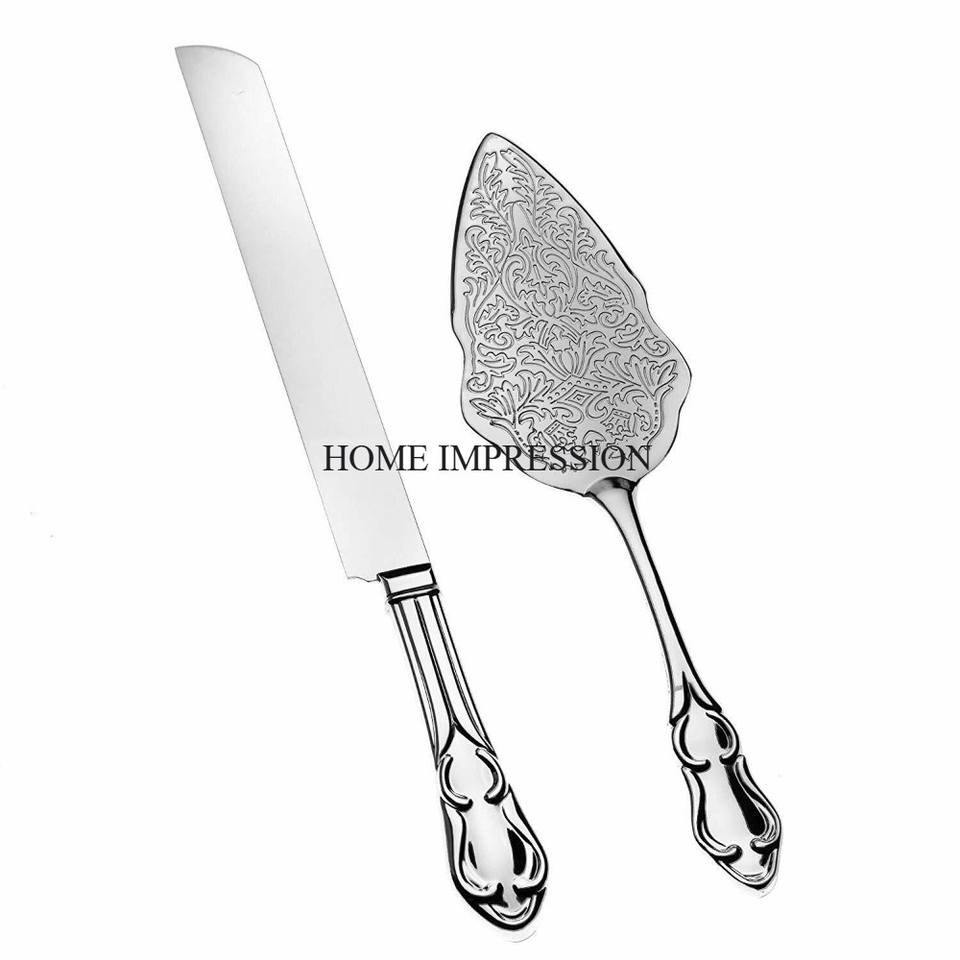 Factory Direct Supply Silver Color Finishing Shiny Polished High Standard Quality Wedding and Parties Cake Server and Knife