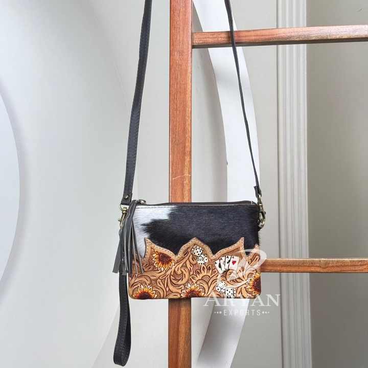 Factory Direct Wholesale Luxury Crossbody Shoulder Bag Hand Tooled Leather Wristlet Purse & Handbag 2025 Messenger Bag for Women