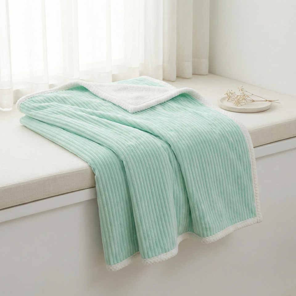 3D Jacquard Ribbed Striped Flannel Fleece Bonded Shu Velveteen Blanket