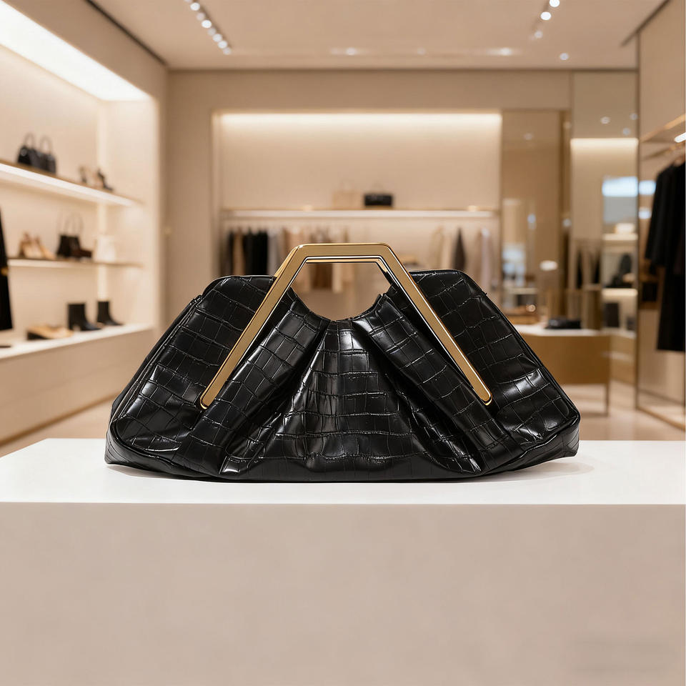 Factory Direct Women Pleated Handbag | Custom Color | Fashion Golden Handle Bag