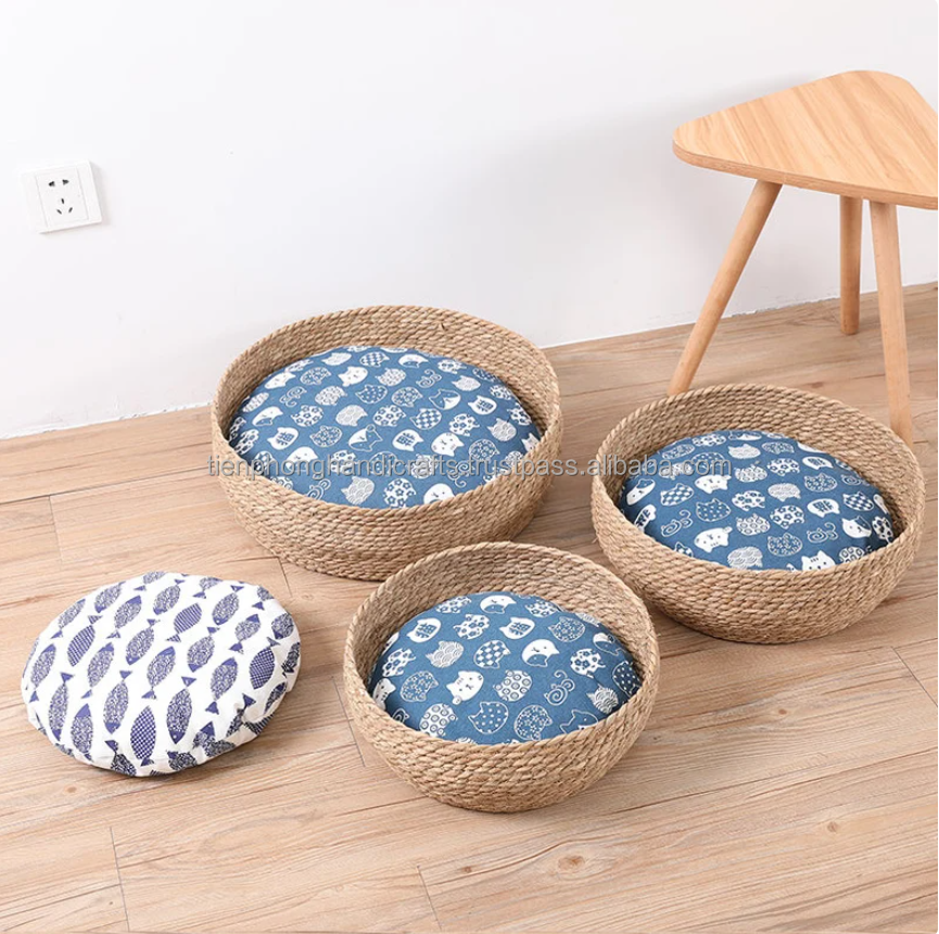 Factory Directly Natural Seagrass Handwoven Pet Bed Seagrass Wicker Dog Cat Bed with Cushion